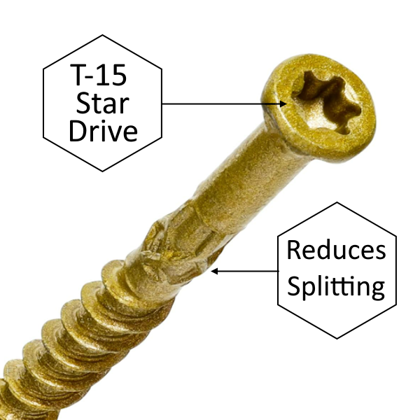 The T-15 Star (Torx) drive and ceramic coating makes the screw stay on the head of your screwdriver and prevents stripping. A T-15 driver bit is included with your order of Spacer Screws.