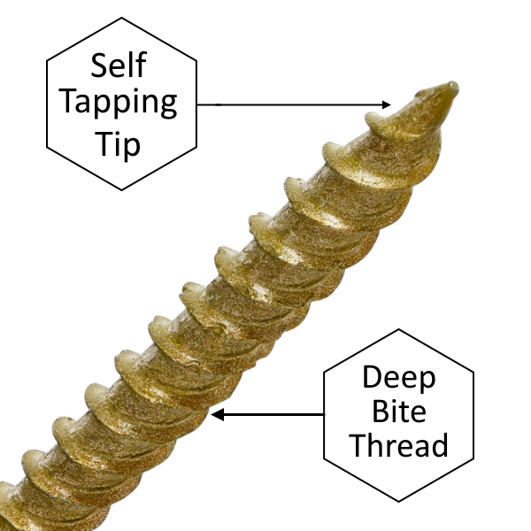 Forget pre-drilling. The advanced self-starting tip and coarse threads mean no pilot hole is needed. The design minimizes wood splitting compared to standard screws. A tiny head provides a flush fit and minimum visibility.